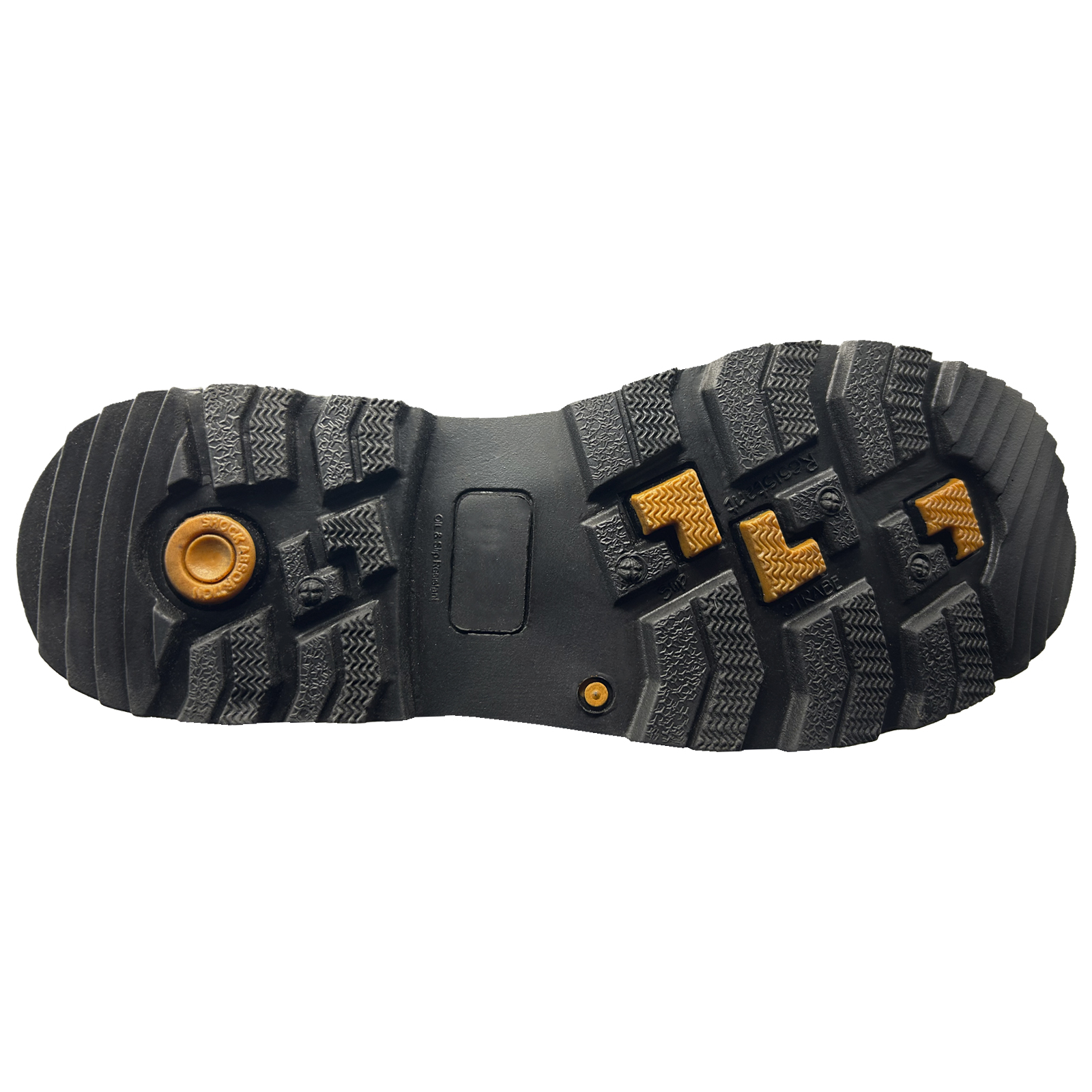 Suela y tacón Compuesto de Hule moldeado, resistente al desgaste, con alta abrasión, salida de lodos , con buena adherencia en superficies resbalosas normales ,